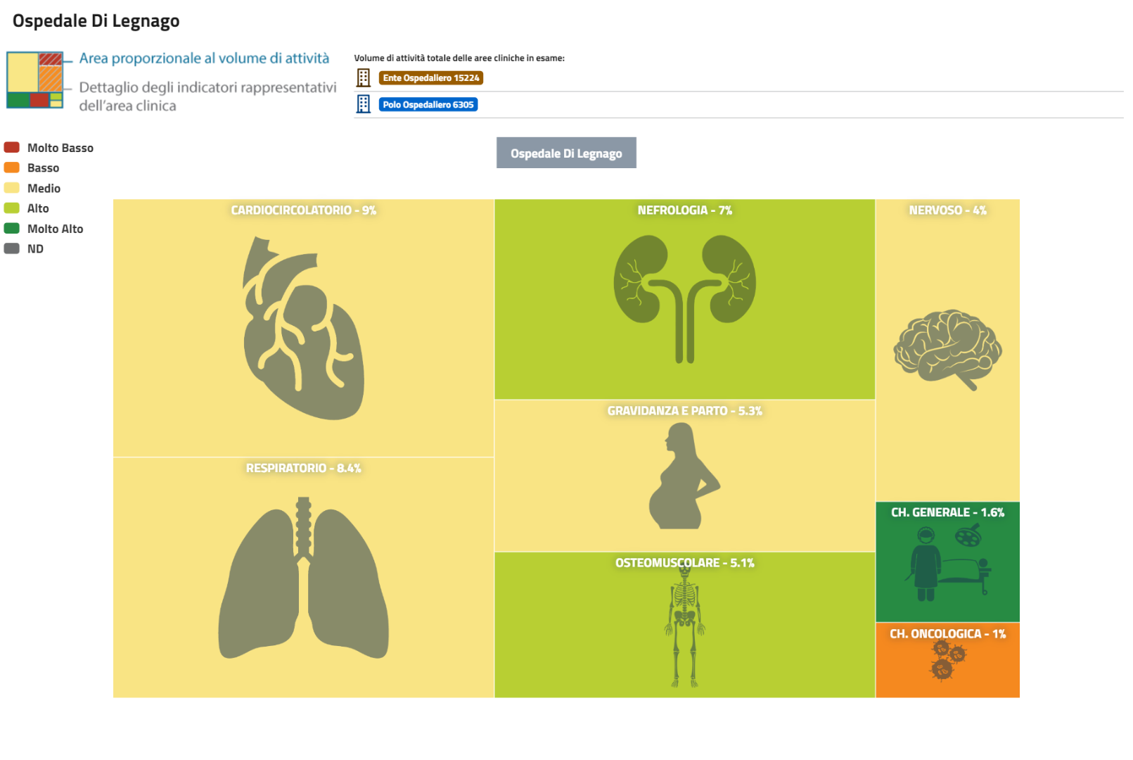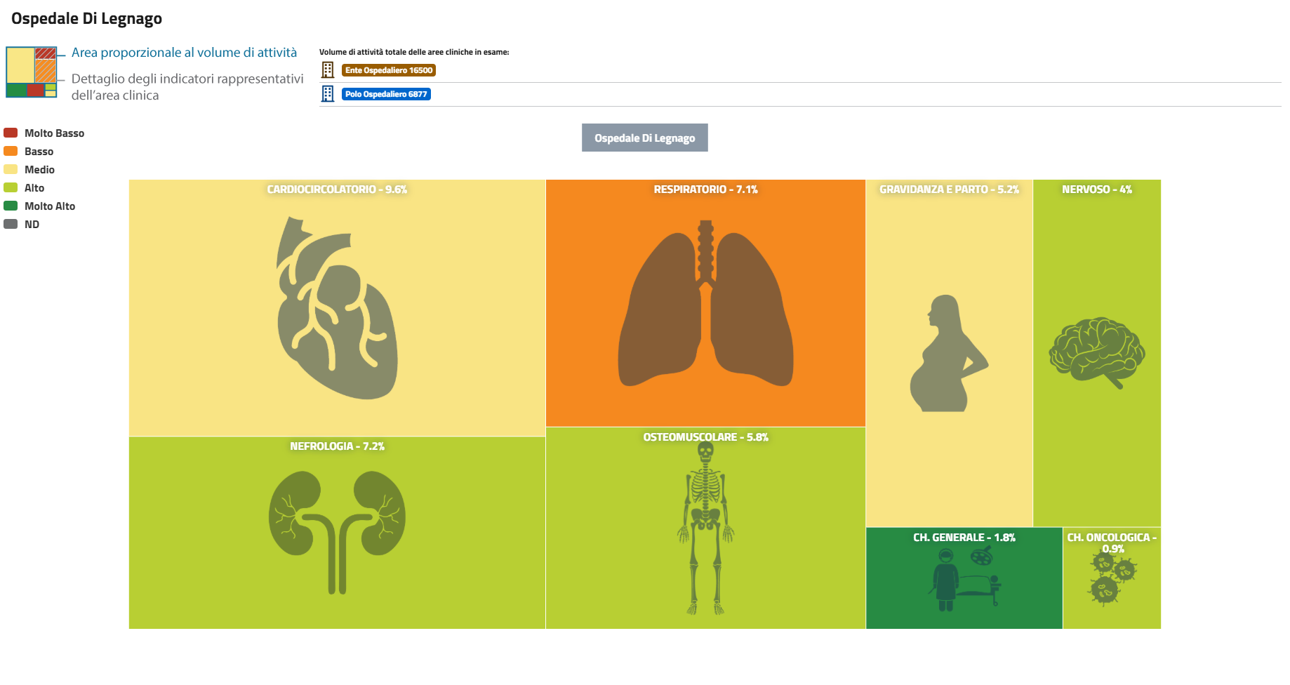 | PNE 2016 - Treemap Aree Cliniche proporzionali ai volumi di attività delle strutture. Ospedale di Legnago | Scarica |