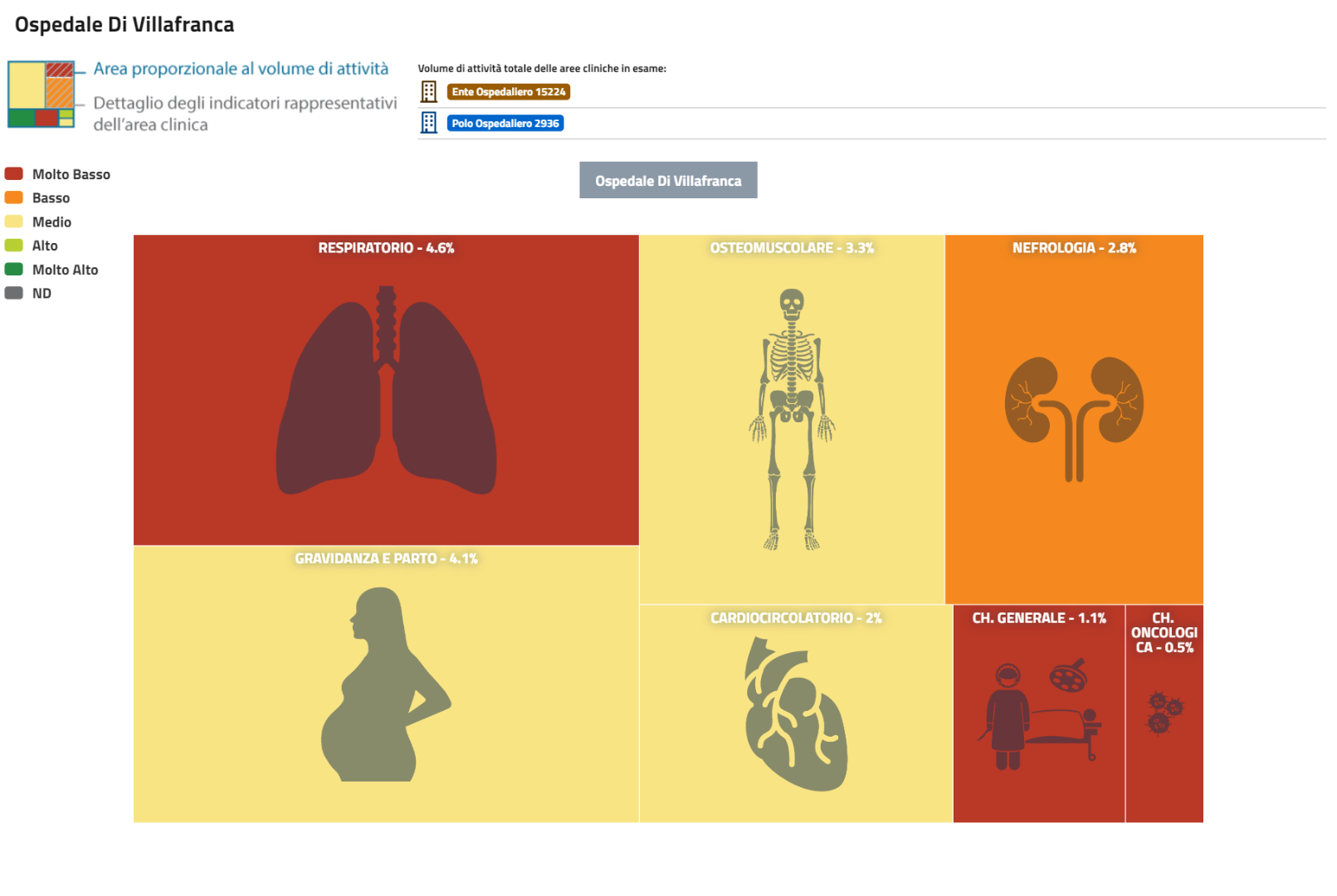 | PNE 2023 Treemap 2022 Aree Cliniche proporzionali ai volumi di attività delle strutture. Ospedale di Villafranca | Scarica |