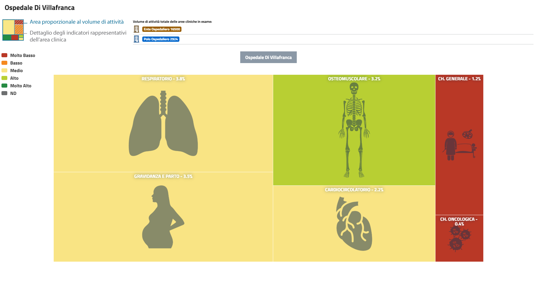 | PNE 2022 Treemap 2021 Aree Cliniche proporzionali ai volumi di attività delle strutture. Ospedale di Villafranca | Scarica |